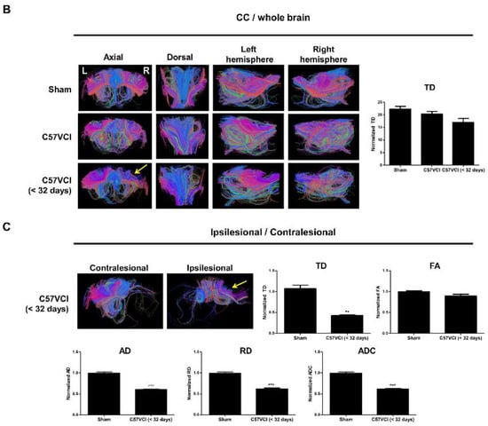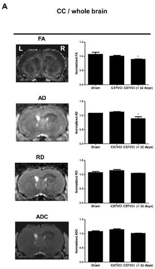 - Boehm-Sturm, P.; Fuchtemeier, M.; Foddis, M.; Mueller, S.; Trueman, R.C.; Zille, M.; Rinnenthal, J.L.; Kypraios, T.; Shaw, L.; Dirnagl, U.; et al. Neuroimaging Biomarkers Predict Brain Structural Connectivity Change in a Mouse Model of Vascular Cognitive Impairment. Stroke 2017, 48, 468–475. [Google Scholar] [CrossRef] [PubMed]