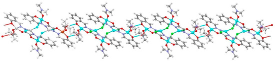 3.2. Synthesis of [Cu3(μ2-1κNO2,2κNO2-L)(μ-Cl)2(Cl)(MeOH)(DMF)2]2 (1)