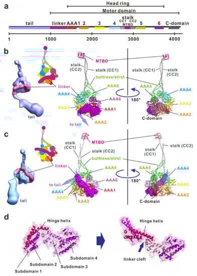- Roberts, A.J.; Malkova, B.; Walker, M.L.; Sakakibara, H.; Numata, N.; Kon, T.; Ohkura, R.; Edwards, T.A.; Knight, P.J.; Sutoh, K.; et al. ATP-driven remodeling of the linker domain in the dynein motor. Structure 2012, 20, 1670–1680. [Google Scholar] [CrossRef]