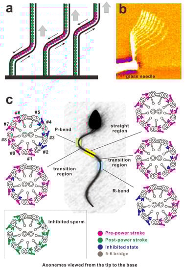 - Hayashi, S.; Shingyoji, C. Bending-induced switching of dynein activity in elastase-treated axonemes of sea urchin sperm--roles of Ca2+ and ADP. Cell Motil. Cytoskeleton 2009, 66, 292–301. [Google Scholar] [CrossRef]