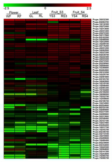 - Wang, L.; Zhao, S.; Gu, C.; Zhou, Y.; Zhou, H.; Ma, J.; Cheng, J.; Han, Y. Deep RNA-Seq uncovers the peach transcriptome landscape. Plant Mol. Biol. 2013, 83, 365–377. [Google Scholar] [CrossRef] [PubMed]
