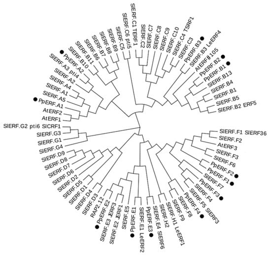 - Pirrello, J.; Jaimes-Miranda, F.; Sanchez-Ballesta, M.T.; Tournier, B.; Khalil-Ahmad, Q.; Regad, F.; Latché, A.; Pech, J.; Bouzayen, M. Sl-ERF2, a Tomato Ethylene Response Factor Involved in Ethylene Response and Seed Germination. Plant Cell Physiol. 2006, 47, 1195–1205. [Google Scholar] [CrossRef] [PubMed]