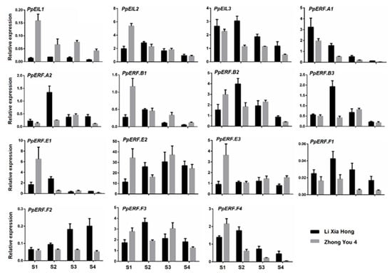 2.2. Expression Profile of EIL and ERF Genes in Peach Fruit