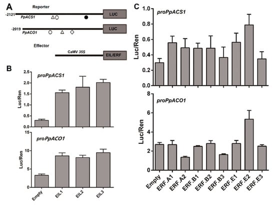 2.3. Roles of PpEILs and PpERFs in Transcriptional Regulation of Ethylene Biosynthesis Genes