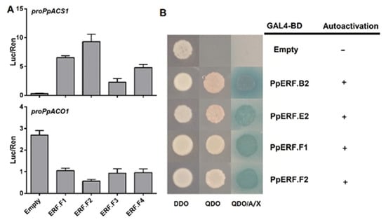 2.4. Analysis of Transcriptional Activation Ability of PpERF Proteins in Yeast