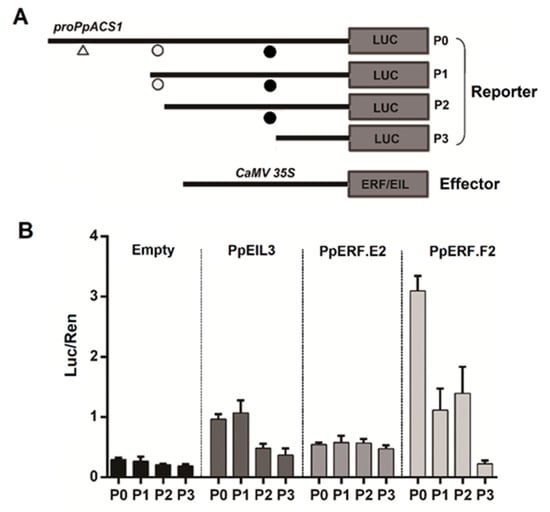 2.5. Identification of Cis-Elements in the PpACS1 Promoter That Interact with EIL and ERF TFs