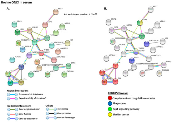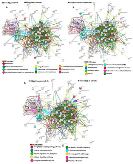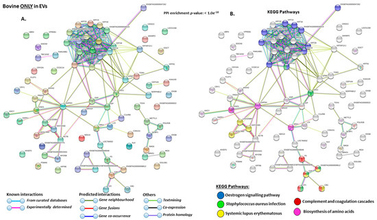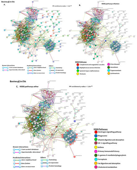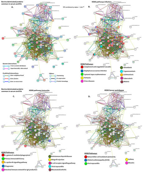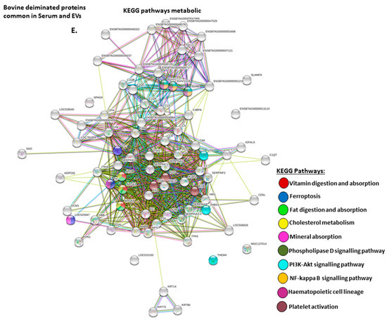 2.4. Protein–Protein Interaction Network Identification of Deiminated Proteins in Bovine Serum and Serum-EVs