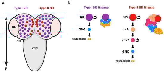 - Alvarez, J.A.; Diaz-Benjumea, F.J. Origin and specification of type II neuroblasts in the Drosophila embryo. Development 2018, 145. [Google Scholar] [CrossRef] [PubMed]