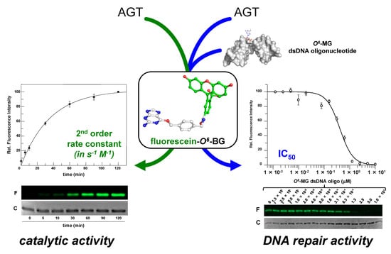 - Goodtzova, K.; Kanugula, S.; Edara, S.; Pauly, G.T.; Moschel, R.C.; Pegg, A.E. Repair of O6-benzylguanine by the Escherichia coli Ada and Ogt and the human O6-alkylguanine-DNA alkyltransferase. J. Biol. Chem. 1997, 272, 8332–8339. [Google Scholar] [CrossRef] [PubMed]