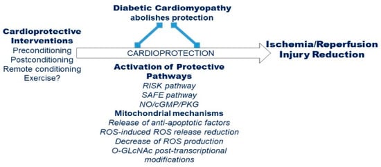 Crisafulli, A.; Pagliaro, P.; Roberto, S.; Cugusi, L.; Mercuro, G.; Lazou, A.; Beauloye, C.; Bertrand, L.; Hausenloy, D.J.; Aragno, M.; et al. Diabetic Cardiomyopathy and Ischemic Heart Disease: Prevention and Therapy by Exercise and Conditioning. Int. J. Mol. Sci. 2020, 21, 2896. https://doi.org/10.3390/ijms21082896