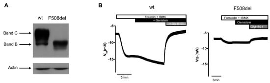 - Bebok, Z.; Collawn, J.F.; Wakefield, J.; Parker, W.; Li, Y.; Varga, K.; Sorscher, E.J.; Clancy, J. Failure of cAMP agonists to activate rescued ΔF508 CFTR in CFBE41o–airway epithelial monolayers. J. Physiol. 2005, 569, 601–615. [Google Scholar] [CrossRef]