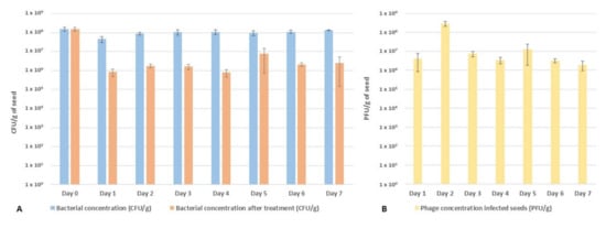 2.3. Performance of the Phage Cocktail in Reducing Pspo Titers during Seed Priming