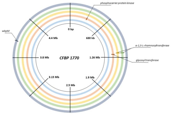 4.2. Tn5 Knock-Out Mutants of CFBP 1770 and Selection of Phage-Resistant Clones