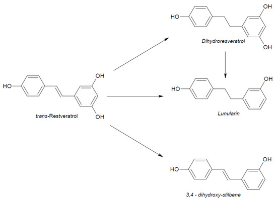 Example of gut microbiota biotransformation of trans-resveratrol.