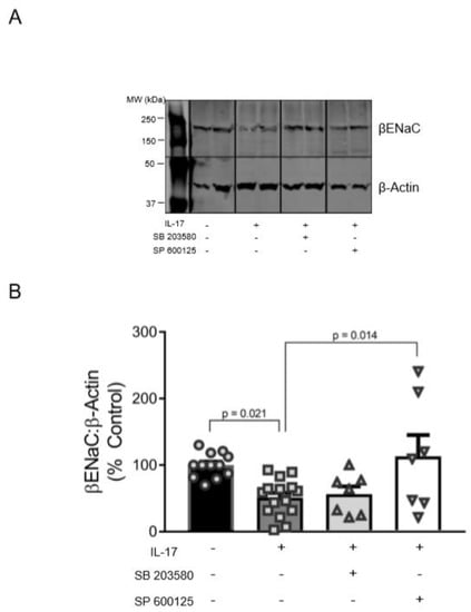 3.4. Role of p38MAPK and JNK in the Reduction of βENaC by IL-17