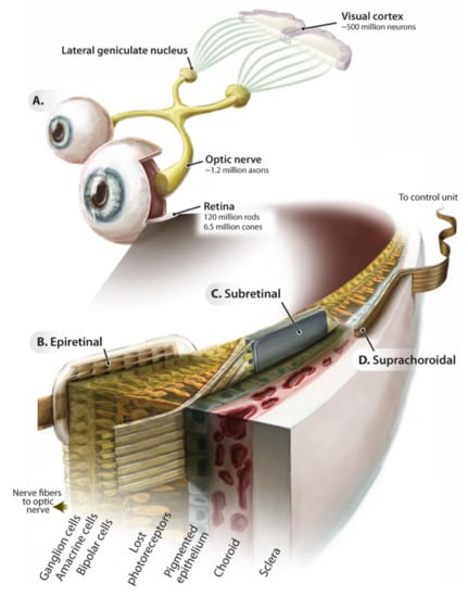 - Bloch, E.; Da Cruz, L. The Argus II Retinal Prosthesis System. Progress Retinal Eye Res. 2019, 50, 89–107. [Google Scholar] [CrossRef]