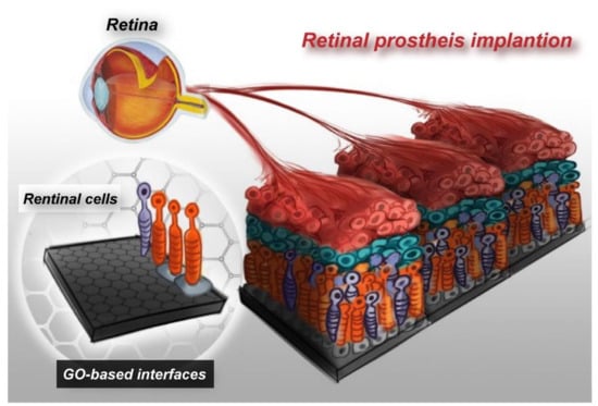 Concept of the advanced electronic retinal prosthesis. Establishing GO-based electrode interfaces with embedded retinal cells, which has the potential to improve the efficiency of retinal prosthesis tissue regeneration and repair functions.