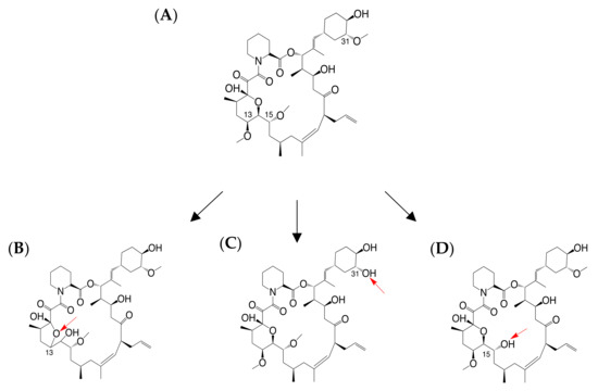 4. Iwasaki, K.; Shiraga, T.; Nagase, K.; Tozuka, Z.; Noda, K.; Sakuma, S.; Fujitsu, T.; Shimatani, K.; Sato, A.; Fujioka, M. Isolation, identification, and biological activities of oxidative metabolites of FK506, a potent immunosuppressive macrolide lactone. Drug Metab. Dispos. 1993, 21, 971–977. [Google Scholar]