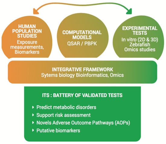 Audouze, K.; Sarigiannis, D.; Alonso-Magdalena, P.; Brochot, C.; Casas, M.; Vrijheid, M.; Babin, P.J.; Karakitsios, S.; Coumoul, X.; Barouki, R. Integrative Strategy of Testing Systems for Identification of Endocrine Disruptors Inducing Metabolic Disorders—An Introduction to the OBERON Project. Int. J. Mol. Sci. 2020, 21, 2988. https://doi.org/10.3390/ijms21082988