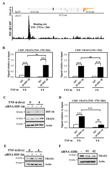 2.3. HIF-1β Binds to the TRAF6 Promoter and Controls TRAF6 Expression Independently of HIF-1α