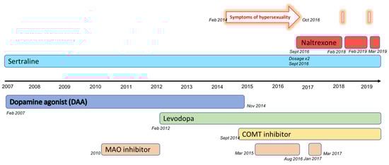 - Nelis, E.A.; Berendse, H.W.; van den Heuvel, O.A. Hypersexuality and other impulse control disorders in Parkinson’s disease. Ned. Tijdschr. Geneeskd. 2016, 160, A9359. [Google Scholar] [PubMed]