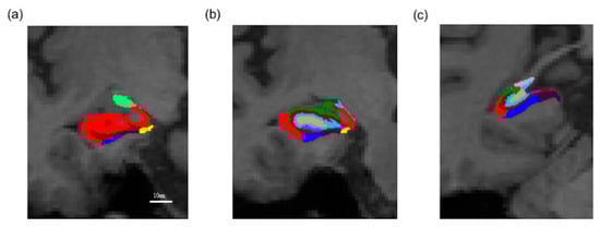 - Iglesias, J.E.; Augustinack, J.C.; Nguyen, K.; Player, C.M.; Player, A.; Wright, M.; Roy, N.; Frosch, M.P.; McKee, A.C.; Wald, L.L.; et al. A computational atlas of the hippocampal formation using ex vivo, ultra-high resolution MRI: Application to adaptive segmentation of in vivo MRI. NeuroImage 2015, 115, 117–137. [Google Scholar] [CrossRef]