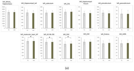 | left_molecular_layer_HP | 571.1 ± 64.3 | 578.0 ± 63.7 | 0.046 | right_molecular_layer_HP | 604.8 ± 64.8 | 608.2 ± 71.3 | 0.347 |