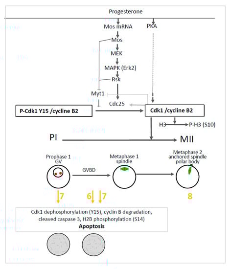 - Nebreda, A.R.; Ferby, I. Regulation of the meiotic cell cycle in oocytes. Curr. Opin. Cell. Biol. 2000, 12, 666–675. [Google Scholar] [CrossRef]