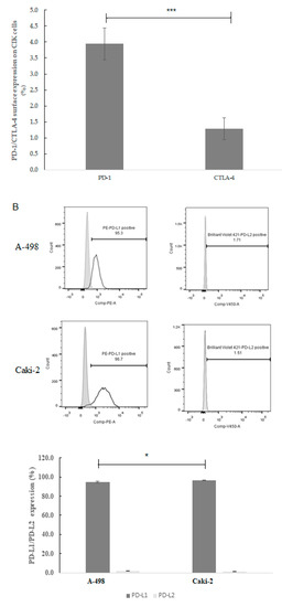 2.2. Surface Expression of Immune Checkpoint PD-1 and CTLA-4 on CIK Cells and PD-L1/PD-L2 on A-498 or Caki-2 Renal Cell Lines