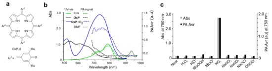 As the ROS play an important role in biology, non-porphyrin chromophores have been employed in PA detection approaches, which produce ROS-activated gain in PA signals or redshifted PA signal maxima (towards NIR) [,].