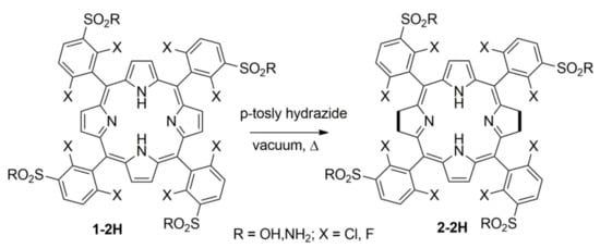 - Tsuda, A.; Furuta, H.; Osuka, A. Syntheses, Structural Characterizations, and Optical and Electrochemical Properties of Directly Fused Diporphyrins. J. Am. Chem Soc. 2001, 123, 10304–10321. [Google Scholar] [CrossRef]