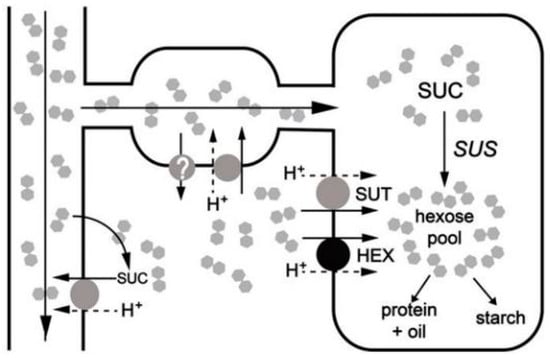 - Kühn, C. Sucrose transporters and plant development. In Transporters and Pumps in Plant Signaling; Springer: Berlin/Heidelberg, Germany, 2011; pp. 225–251. [Google Scholar]