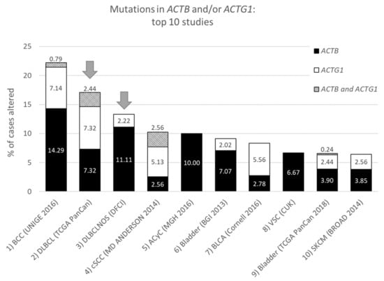 2.4. For DLBCL ACTB Mutations Occur More Frequently Than ACTG1 Mutations, Whereas for Multiple Myeloma This Is the Opposite
