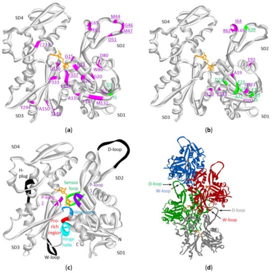 | Polymer contact | SD2:D-loop (40–50) | M44T, M44I, G46D, M47L | - |