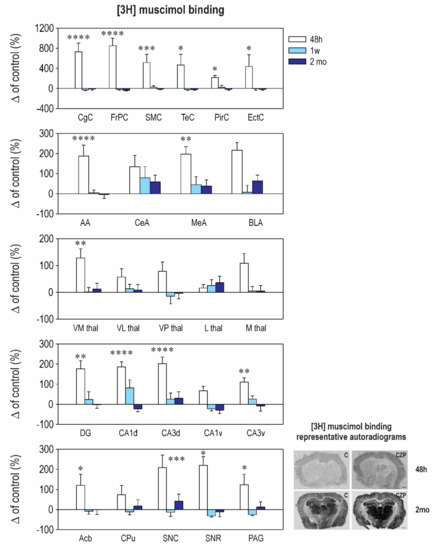 2.2. Effect of CZP Administration on [3H] Muscimol Binding and [3H] Flunitrazepam Binding