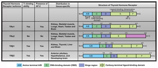 - Mitsuhashi, T.; Tennyson, G.E.; Nikodem, V.M. Alternative splicing generates messages encoding rat c-erbA proteins that do not bind thyroid hormone. Proc. Natl. Acad. Sci. USA 1988, 85, 5804–5808. [Google Scholar] [CrossRef] [PubMed]