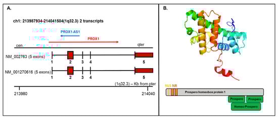 - Zinovieva, R.D.; Duncan, M.K.; Johnson, T.R.; Torres, R.; Polymeropoulos, M.H.; Tomarev, S.I. Structure and chromosomal localization of the human homeobox gene Prox 1. Genomics 1996, 35, 517–522. [Google Scholar] [CrossRef][Green Version]
