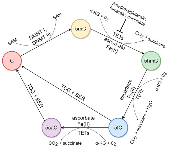 - Wu, X.; Zhang, Y. TET-mediated active DNA demethylation: Mechanism, function and beyond. Nat. Rev. Genet. 2017, 18, 517–534. [Google Scholar] [CrossRef] [PubMed]