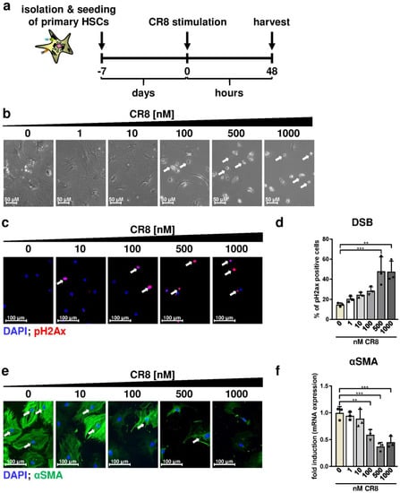 2.5. CR8-Mediates Anti-Fibrotic Effects and Triggers DNA Damage in Primary Murine HSCs