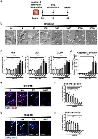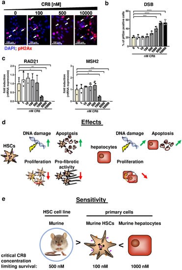 2.6. Primary Hepatocytes Are Less Sensitive to CR8 Compared to HSCs with Regard to Cell Survival and DNA Damage Induction