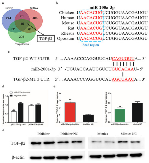 2.9. TGF-β2 is a Target Gene of MiR-200a-3p