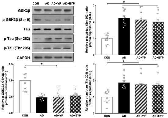 2.3. Effect of Plasma from Young Exercised Mice on GSK3β and Tau Protein Expression in Hippocampus