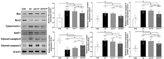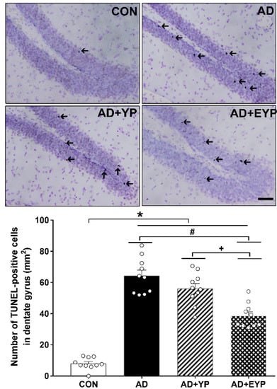 2.5. Effect of Plasma from Young Exercised Mice on Apoptosis in the Hippocampus