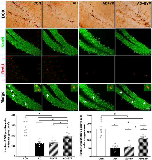 2.8. Effect of Plasma from Young Exercised Mice on Cell Proliferation and Neurogenesis in the Hippocampus