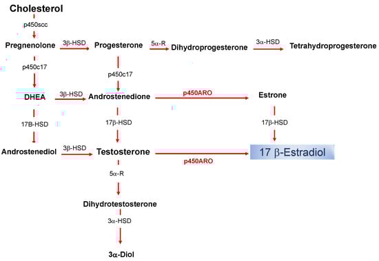 - Li, J.; Gibbs, R.B. Detection of estradiol in rat brain tissues: Contribution of local versus systemic production. Psychoneuroendocrinology 2019, 102, 84–94. [Google Scholar] [CrossRef] [PubMed]