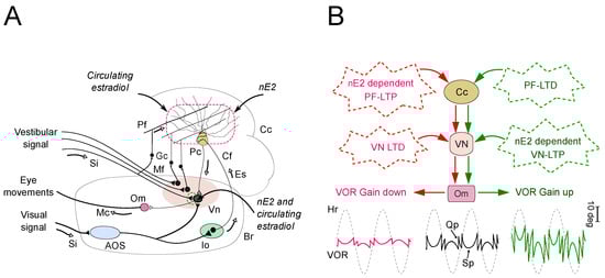 - Dieni, C.V.; Ferraresi, A.; Sullivan, J.A.; Grassi, S.; Pettorossi, V.E.; Panichi, R. Acute inhibition of estradiol synthesis impacts vestibulo-ocular reflex adaptation and cerebellar long-term potentiation in male rats. Brain Struct. Funct. 2018, 223, 837–850. [Google Scholar] [CrossRef]