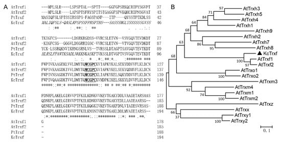 2.2. KcTrxf Cloning and Sequence Analysis