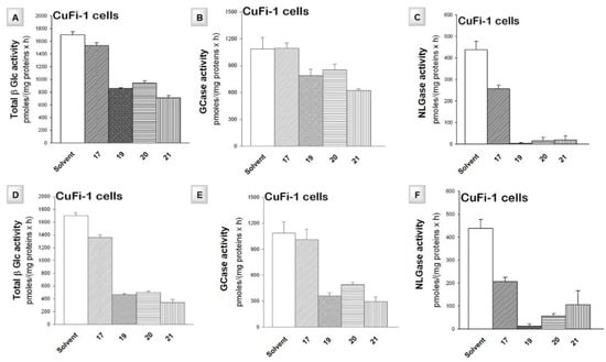 The above results are broadly in line with those reported by Guisot et al., who conceived to evaluate a library of DNJ derivatives 17–23 (Figure 6), in which triazole-bearing alkyl chains were introduced to link an adamantane moiety to the iminosugar core []. This project stands on the intriguing therapeutic potential of AMP-DNM (16) [,,,], even though it must be noted that, to the best of our knowledge, the latter has never been tested as a CFTR corrector.