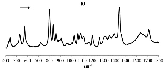 Raman spectra of 1M GA incubated at the initial time (t0), room temperature, and 40 °C for 8 weeks.