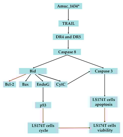 2.5. Amuc_1434* Activated the LS174T Cells’ Apoptotic Pathway via TRAIL